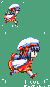 以前、私のWebsite上でドット絵アニメーションのサンプルとして使用していたデータのデザイン・動作を修正した物です。 元々のデータから、帽子と髪型、陰の付け方を変更し、アニメーション枚数を6枚に追加しております。 私はどうしてもショートカットのキャラクターばかりデザインしてしまうので、デザインを変更する際、ロングヘアーのキャラクターにしてみました。 このデータの想定プラットフォームはWindowsPCです。 元々あったデータを修正したため作業時間は修正のみで、約6時間です(元データの作成には約8時間かかっておりました)。 | ||||